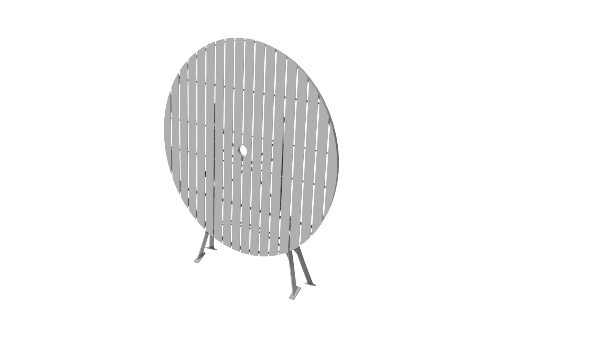 The folding table itself is a great piece of practical design and comfortably seats 4 people. It features an attractive slatted top and includes a 54mm diameter central hole for a parasol. Measuring 1m in diameter and 73cm high, the table weighs a reassuring 29kg. Each table is supplied with floor-protection feet pads with each foot also having fixing holes if required to secure in place.