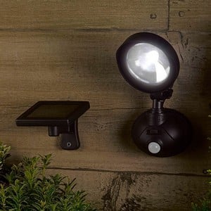 This solar powered light has a detection range up to 8-10m across a 120° arc and comes with a 1.8m cable between the light and the solar panel.