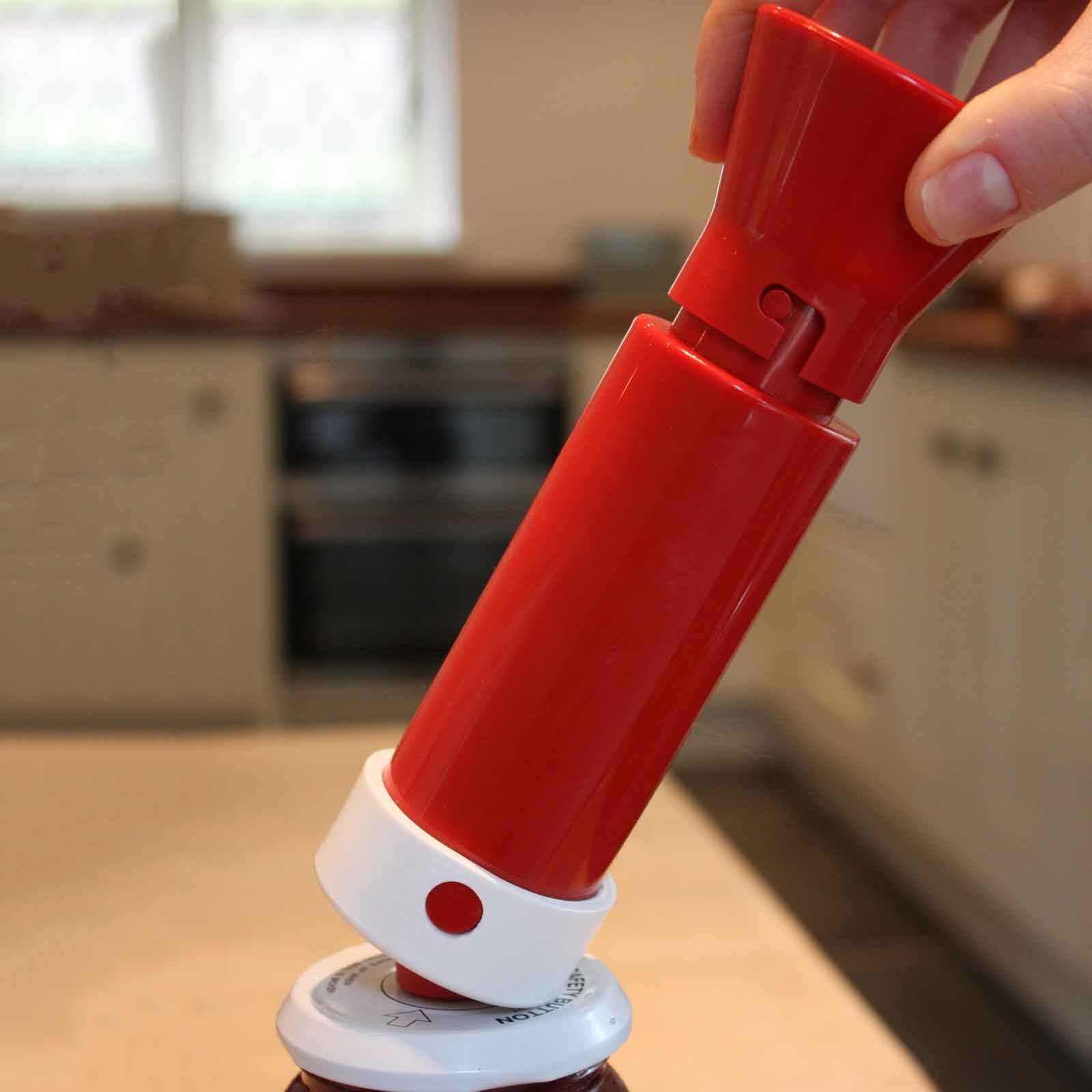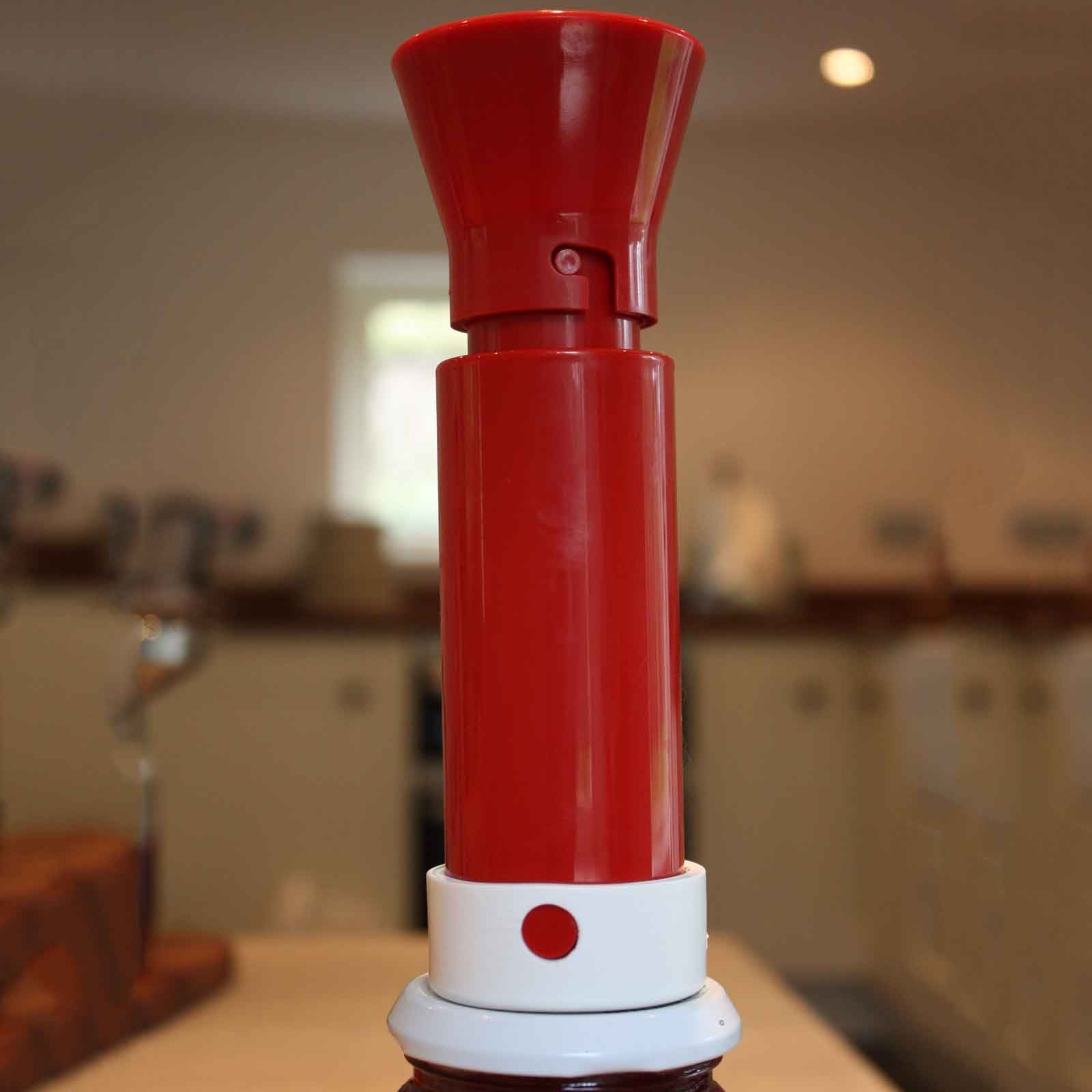 The 18cm long pump is simple to use; just push and pierce the metal lid of the jar with the sealing cap, place the Pompetta pump over the cap and in a few pulls the air will be expelled and a sealed vacuum will be created in the jar in no time at all.